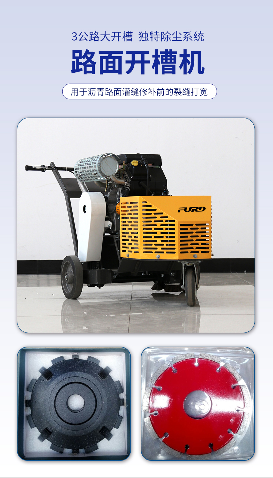 適用于瀝青路面灌縫修補(bǔ)前的裂縫打?qū)?。該設(shè)備具有使用方便,擴(kuò)縫速度快,刀片使用壽命長,擴(kuò)縫寬度可調(diào)等優(yōu)點(diǎn)