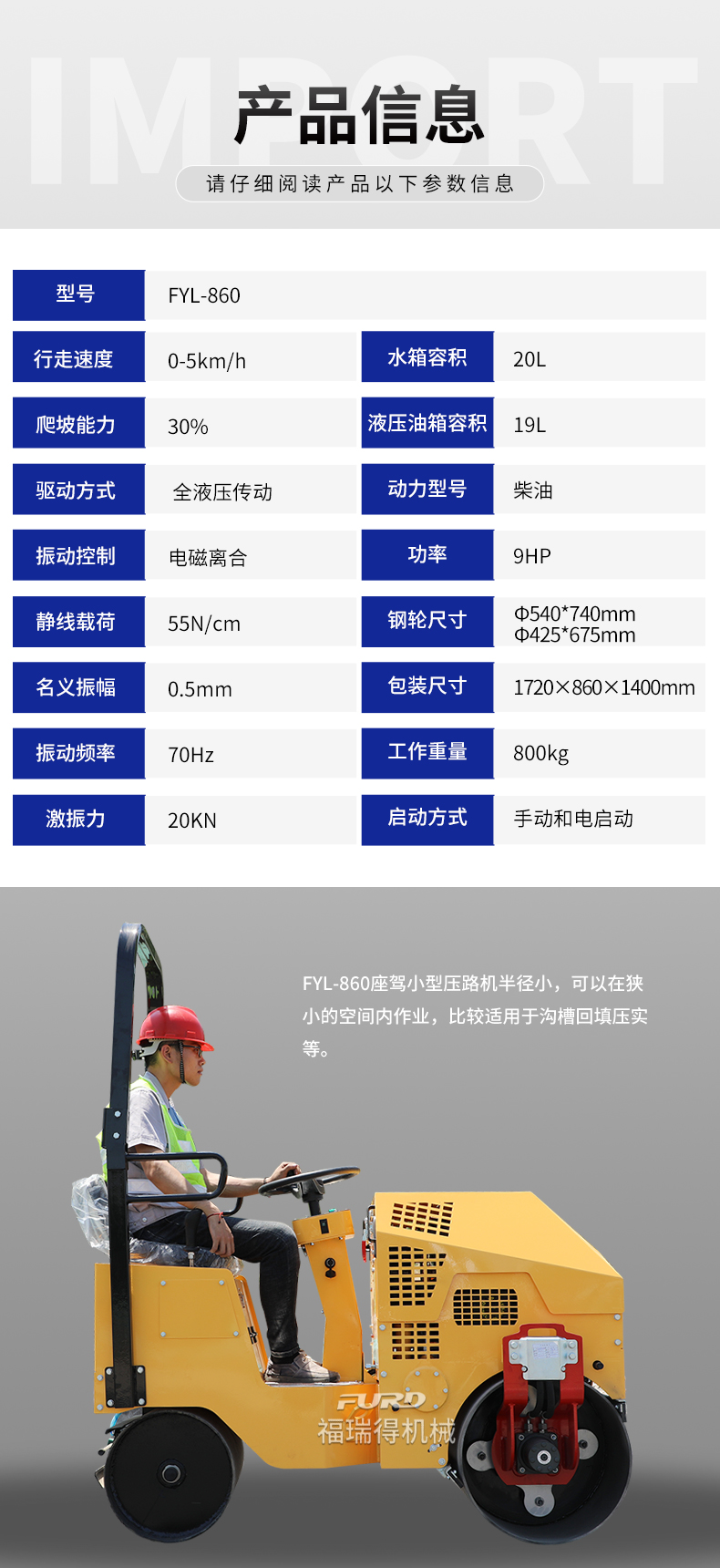 主要用于溝渠基礎(chǔ),道路,體育場地的壓實整平,也可用于壓實瀝青表面的作業(yè)。